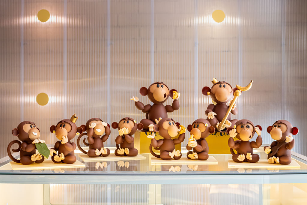 L’Atelier: La tienda de alta pastelería presenta este año una línea de monas de chocolate llamada “Monos, monas” con simpáticas figuras de monos simulando gestos y emociones humanas.