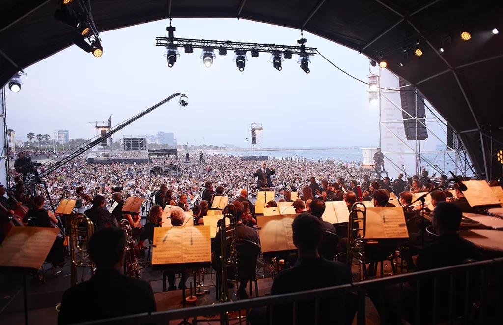 El primer concierto será el 9 de julio a las 21 h. La Playa de Sant Sebastià se convertirá en el escenario de un evento musical único protagonizado por el Coro y la Orquesta Sinfónica del Liceu, dirigidos por los reconocidos Pablo Assante y Sergi Cuenca, respectivamente.